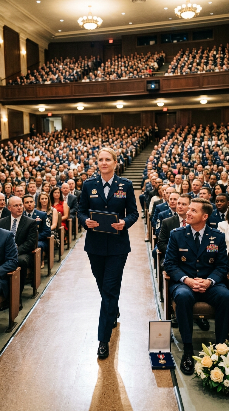 I walked forward in full service dress, accepted his insignia case, and kept my voice professional.