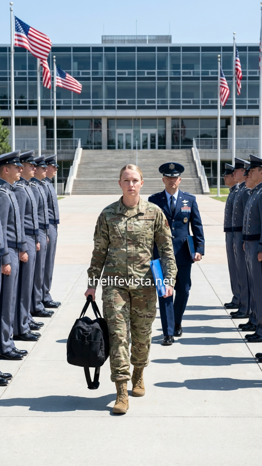 “What is that woman doing here?” during a formal inspection, he muttered his aid, loud enough for nearby personnel to hear. Sarah walked calmly toward the tactical operations building, her trained eyes automatically cataloging the two F22 Raptors positioned on the adjacent flight line. She recognized the specific tail numbers and noted their external fuel tank configurations, details that would prove significant very soon.