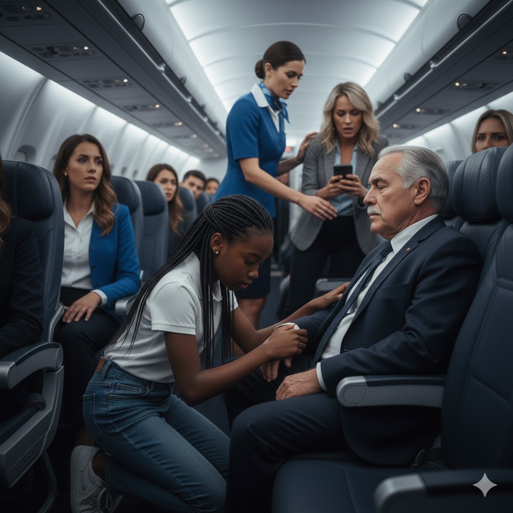 Ava rushed forward. “He’s having a stroke!” she cried. The flight attendant hesitated. “Sweetheart, please step back—” But Ava didn’t. She checked the man’s pulse, tilted his head, and began chest compressions as she’d been taught. “We need his feet elevated—quick!” she yelled. The crowd obeyed. She guided the attendants through every step until the man started breathing again.