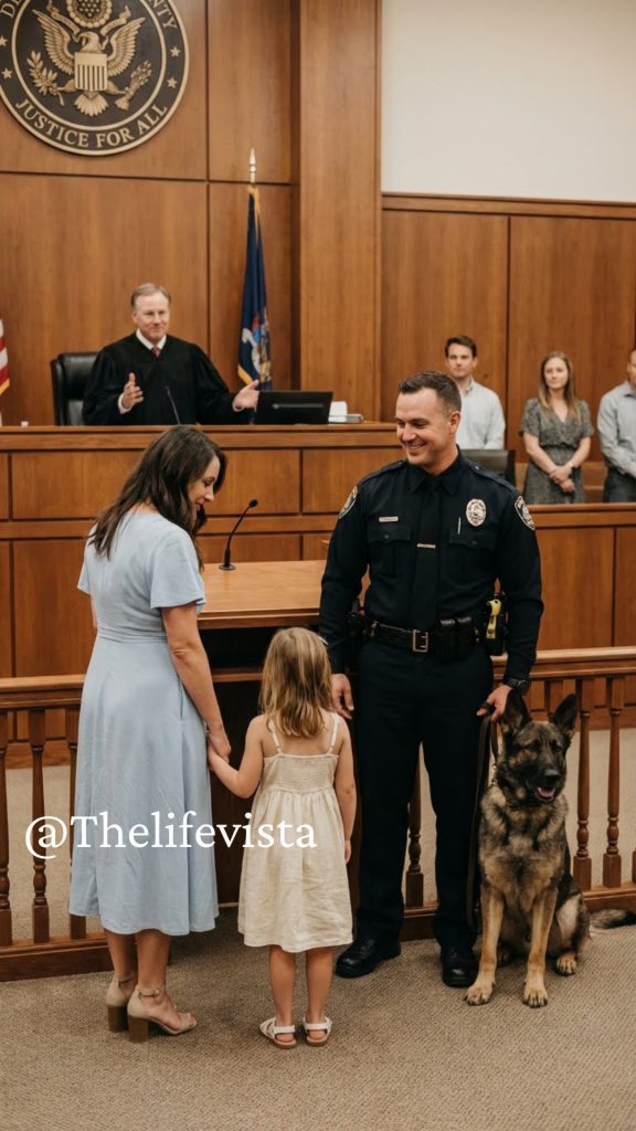 The police dog who had sniffed the crime scene, who had comforted the child, and who was now watching the defendant with a calm that felt less like obedience and more like judgment.