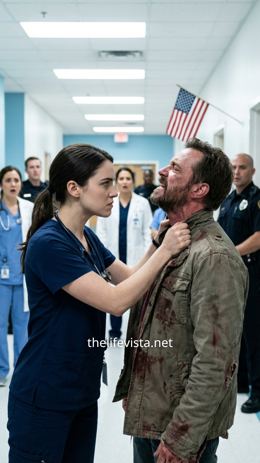 Two security guards rushed him. Reed reacted with instincts carved into him years earlier on a battlefield. One guard hit the floor hard enough to crack tile. The other was hurled into a supply cart. Chaos erupted instantly—patients scrambling away, nurses backing off, alarms shrieking through the department.
