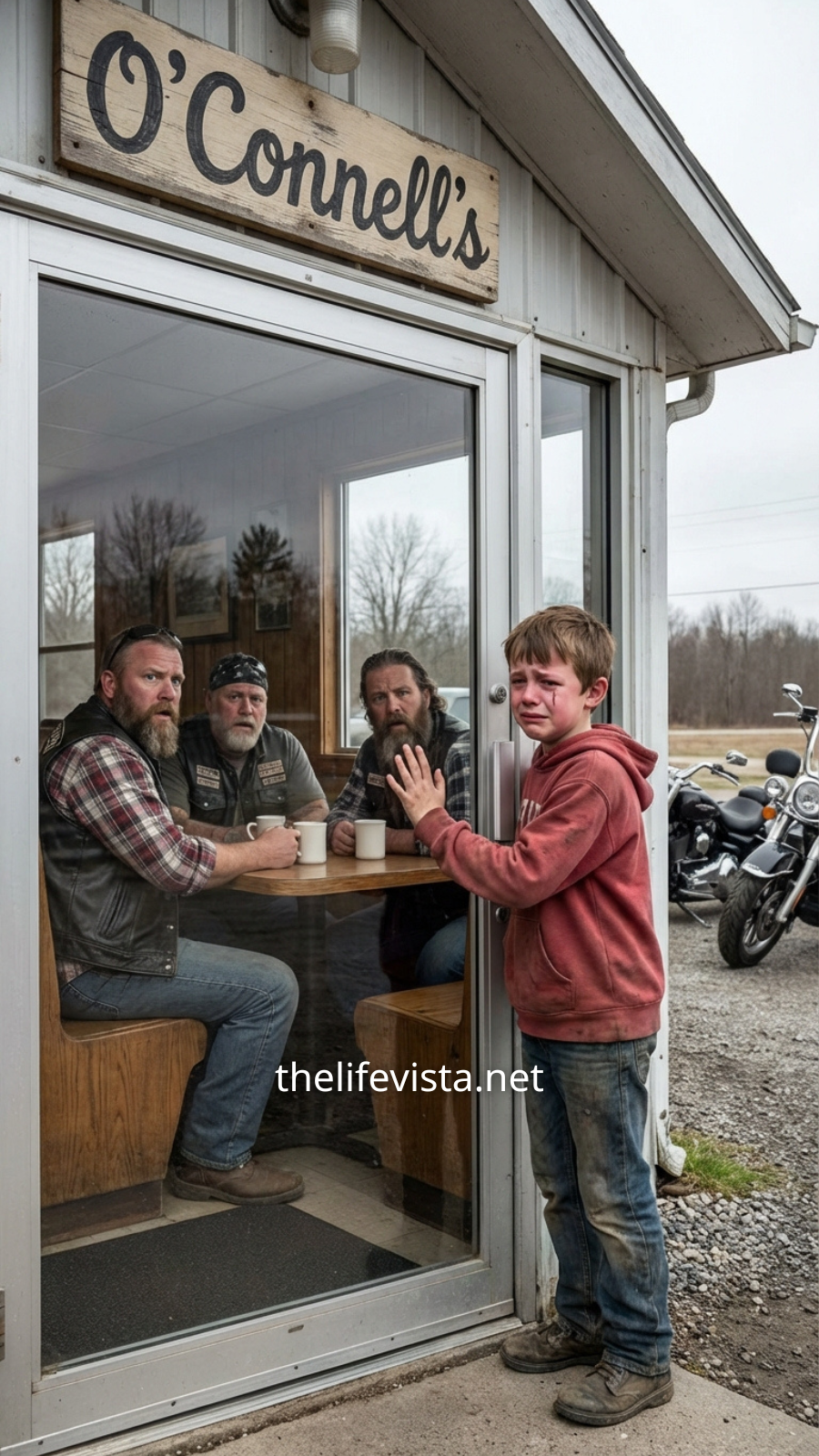The boy lifted a shaking hand and pointed through the diner window toward a run-down motel across the road.