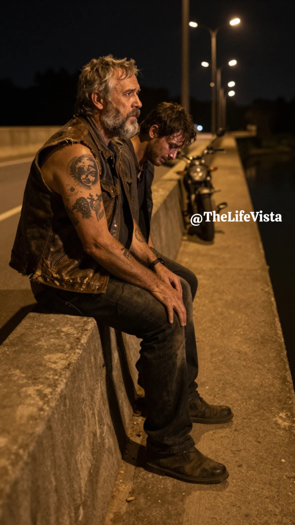 “Another biker,” he said softly. “Older than me. Didn’t preach. Didn’t threaten. Just climbed over and sat with me for most of the day. We talked about everything and nothing. He never once told me not to jump.”