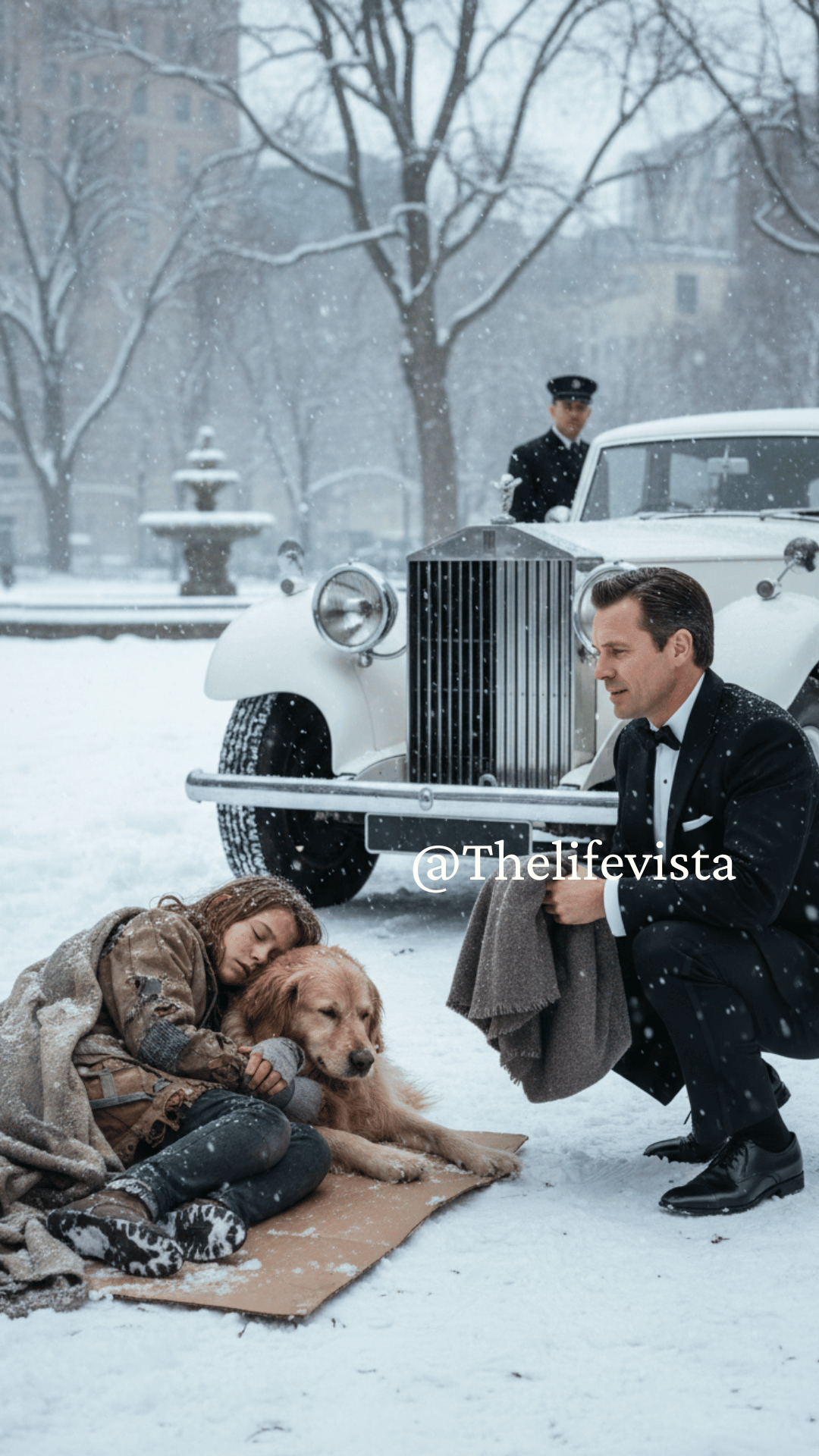 He stepped out, the icy wind slicing through his tailored suit. The street was silent except for the whisper of snow. As he approached, the little girl stirred, her frightened eyes darting up.