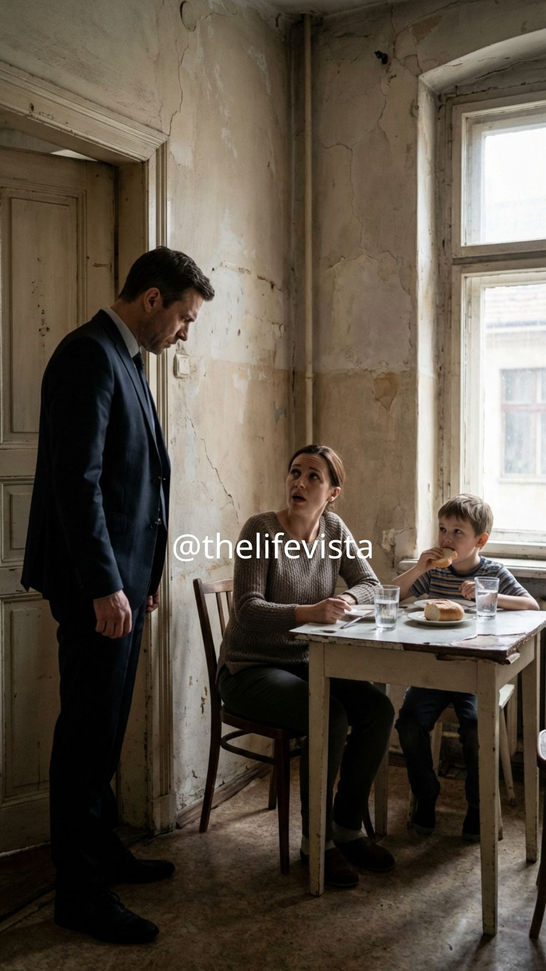 The woman pushed open the heavy door and disappeared inside with the child, and Ethan Carter hesitated for a moment before quietly stepping inside as well. The hallway smelled faintly of damp plaster and old paint, and somewhere upstairs a pipe rattled softly in a way that made the building feel colder and more fragile than it already looked. The woman stopped at a small apartment near the end of the corridor and pushed open the door, but it didn’t fully close behind her.
