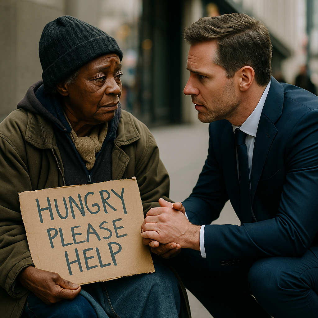 As Jonathan walked toward his high-rise headquarters, something caught his eye near the subway entrance — a frail elderly woman sitting on the cold pavement, clutching a cardboard sign that read: “Hungry. Please help.” Her hands trembled as she hummed a faint tune.