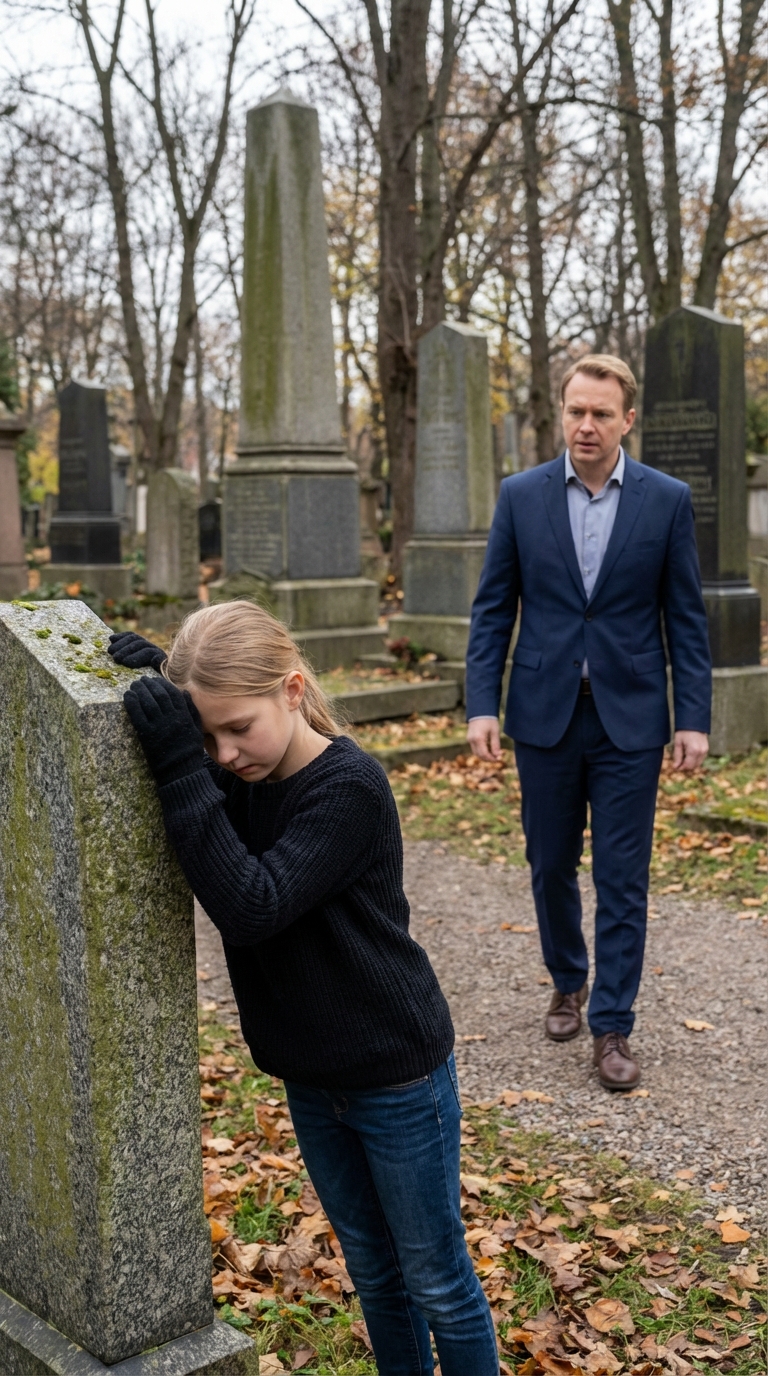 Months later, Jonathan and Sophie returned to Caleb’s grave. She wore a new pink coat, her hair neatly braided. She set a small flower on the headstone.