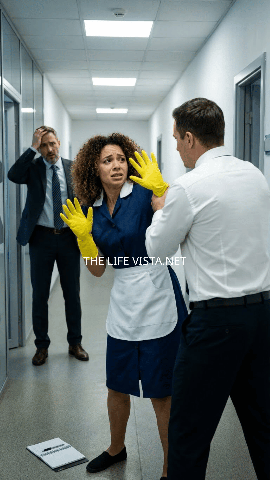 Hunched over his desk, the man was a portrait of wealth and confidence in public tailored suits. sharp jawline, hands that commanded empires. But not this morning. This morning, he looked beaten. Maya had paused, watching as he stared down at a stack of documents. His face was pale, his right hand trembling as he picked up a pen. He hesitated, then pressed the pen to the page. He was about to sign something. A knockdown feeling twisted in Maya’s gut. Before she could process it, a harsh voice snapped behind her. What the hell are you doing here? She turned sharply to find Mr. Carver, her floor supervisor, barreling down the hallway.