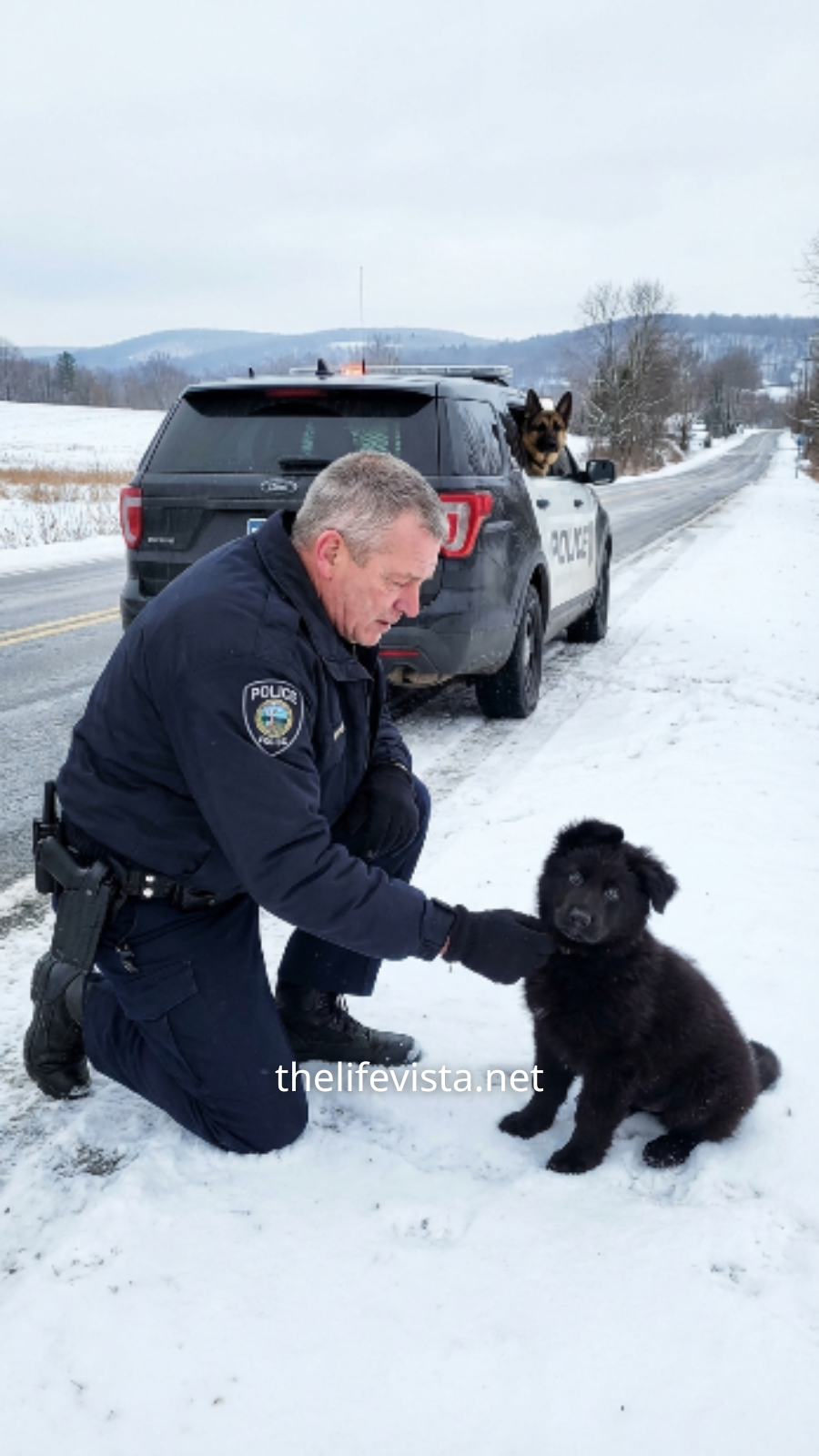When Thomas began to walk back toward the road, it fell into step beside him. Chief followed behind, and together they formed a strange procession through the snow-covered forest. A police officer, a German Shepherd, and a wolf pup, all united by a single purpose.