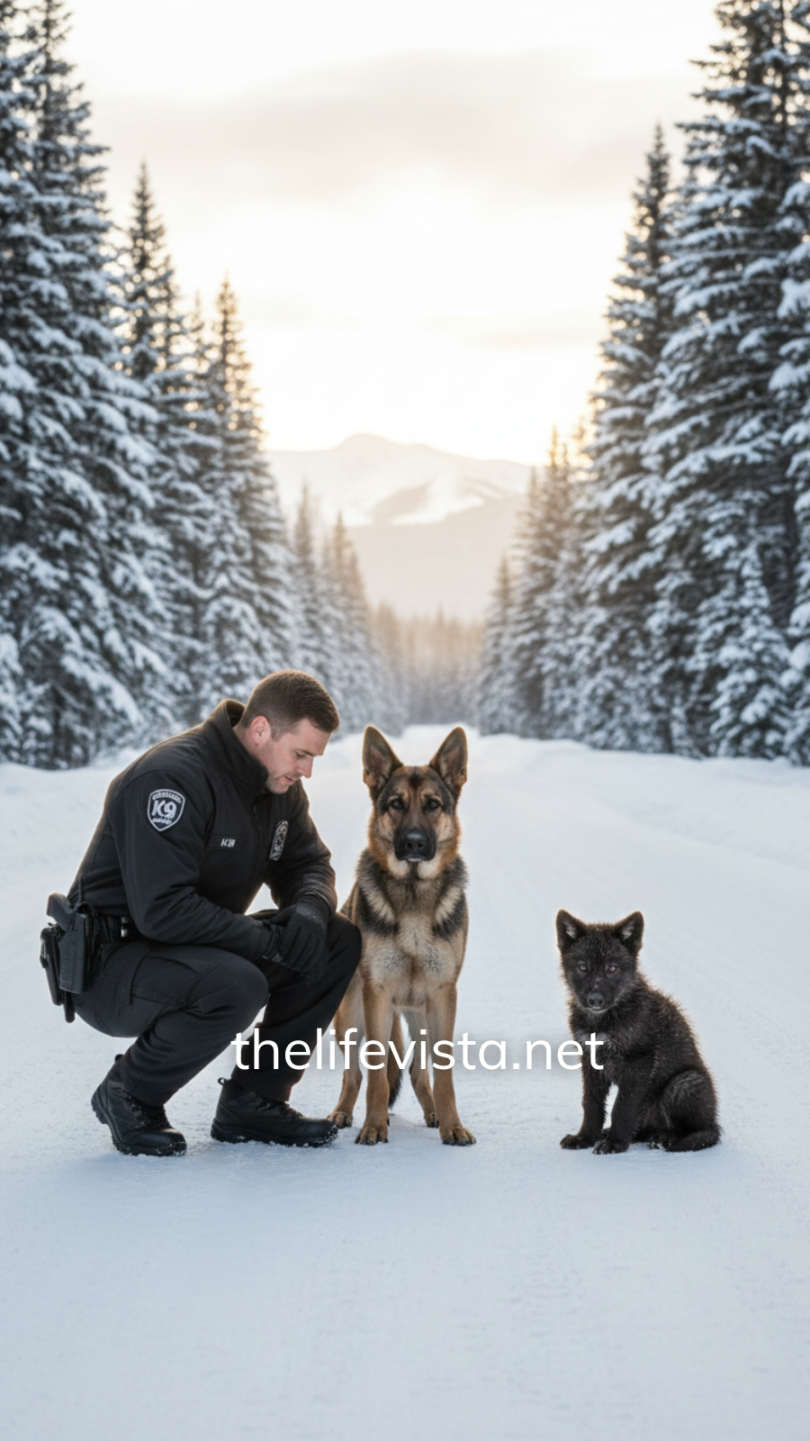 Daniel stepped out slowly, boots sinking into fresh drifts. The pup still didn’t run. It rose with deliberate calm, turned toward the tree line, and took three measured steps—then looked back over its shoulder as if to say, Come.