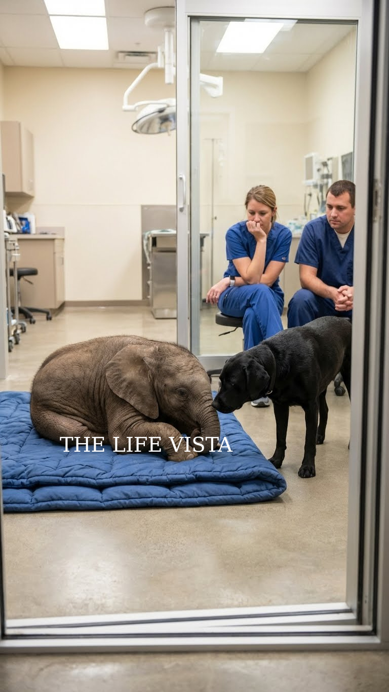 The stillness inside the sterile observation chamber felt crushing, thick enough to press against the chest. The only sound breaking it was the harsh, uneven breathing of a life slipping quietly away. At the center of the room, beneath unforgiving white medical lights, lay the reason the entire sanctuary had come to a halt. Tembo—a blind elephant calf barely three weeks old—had curled his thin gray body inward, forming a tight, defensive knot. He had refused nourishment, rejected touch, and turned away from every attempt to comfort him, as though surrendering to the inevitable.