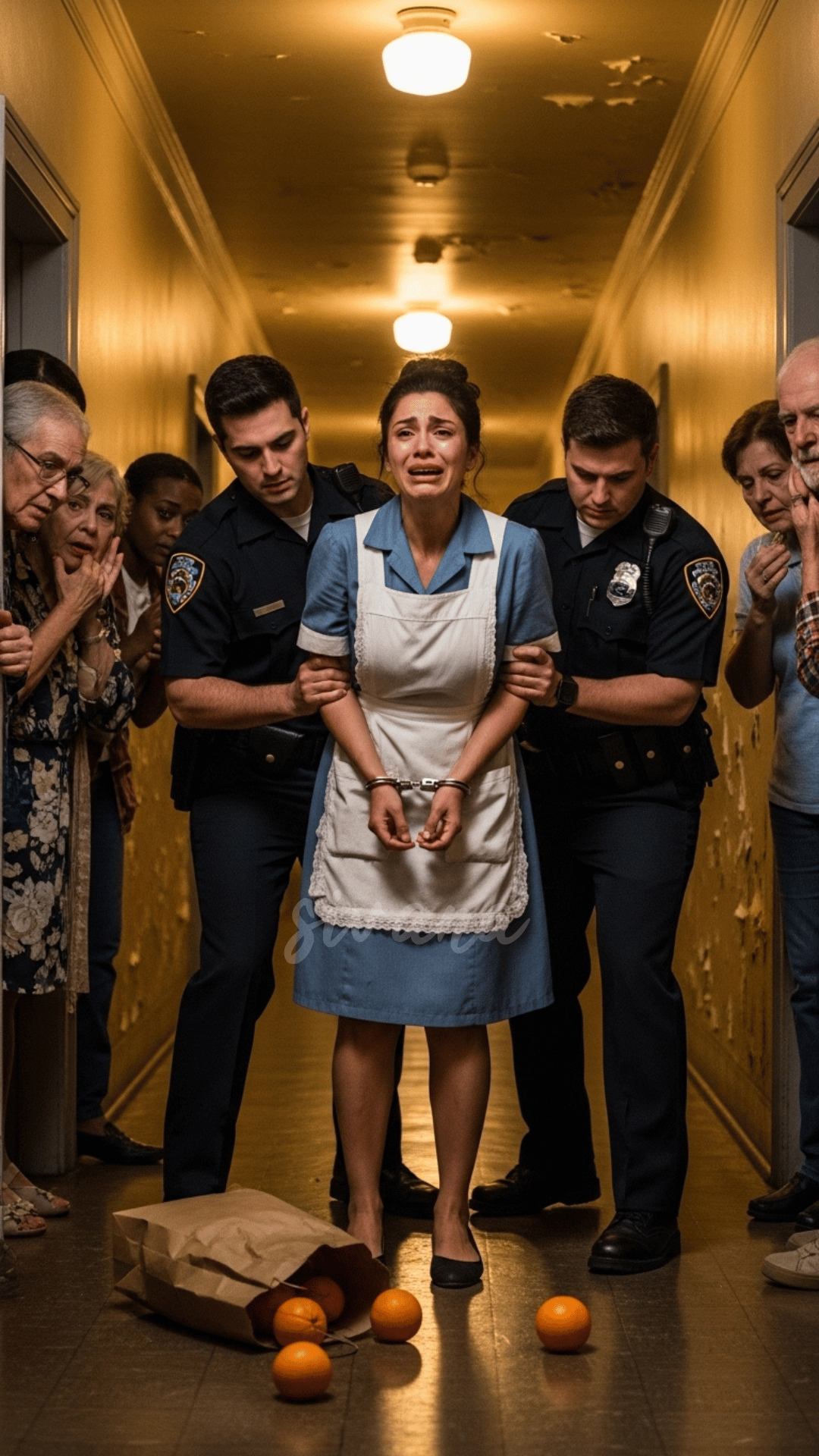 Her grocery bag hit the floor, oranges rolling everywhere.