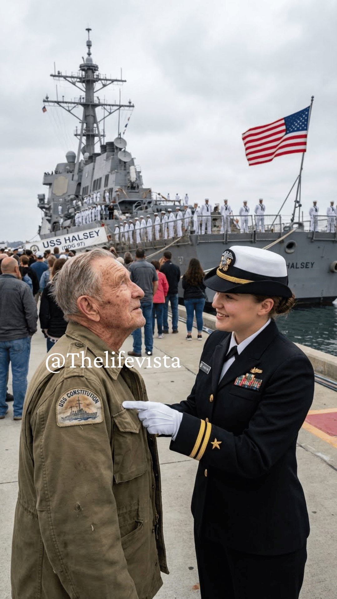 Lieutenant Williams’s posture was a master class in rigid authority. She stood with her feet shoulder-width apart, hands clasped behind her back, her chin held high. Every line of her body, from her polished shoes to the sharp crease in her uniform, screamed control. She was the gatekeeper, the unbreachable wall of naval regulation. In her clear, certain eyes, Frank wasn’t a guest of honor. He wasn’t even a veteran to be respected. He was a problem. A loose variable in a perfectly calculated equation. An old man, probably confused, who’d wandered away from a tour group. A security risk.