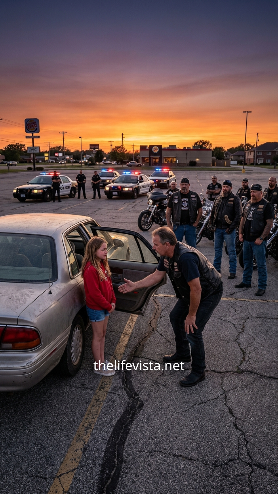 Later, long after the police lights had faded and the parking lot had returned to something ordinary, the riders finally dispersed in small groups, engines humming low as they peeled off into the night.