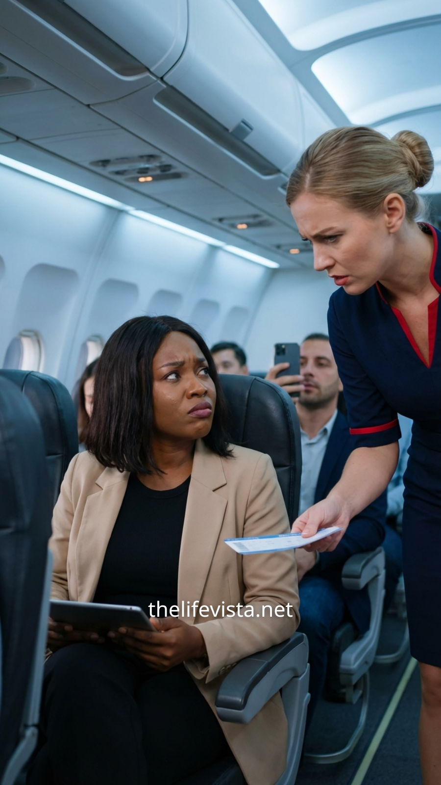 She turned to the cabin, voice rising. «Y’all, we got another one trying to sneak into first class.» The businessman in 1C immediately pulled out his phone, finger hovering over the record button.