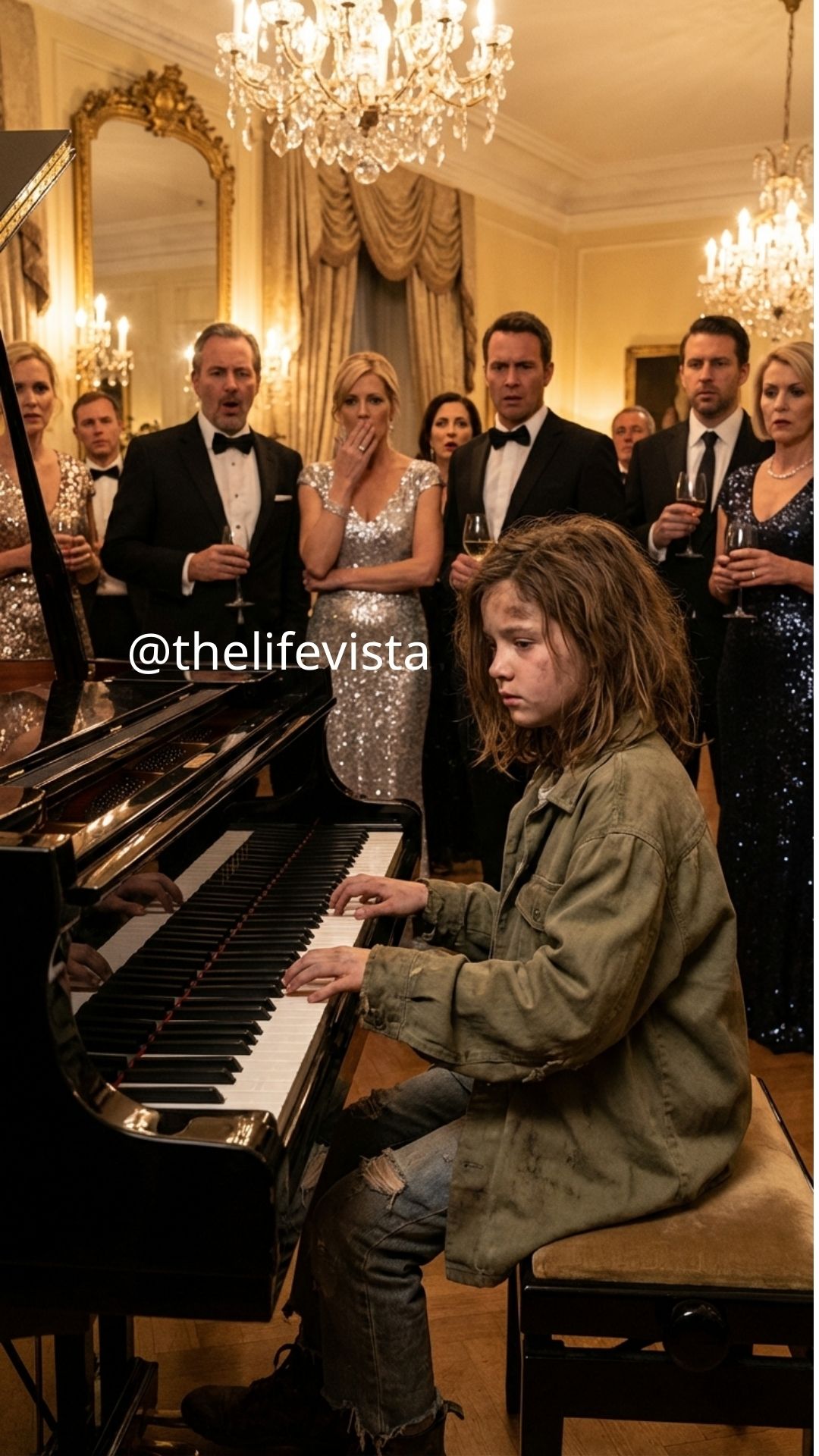 But the girl did not step back, and she did not lower her eyes the way people expected. She lifted her chin, planting herself directly under the chandelier’s brightest circle of light, and looked straight at the most powerful woman in the room with an unflinching stare. “I came to play the piano,” she said in a clear voice that cut through the murmurs. “I’m going to play a song. A song you will never be able to forget.” The boldness of the claim made the crowd’s attention sharpen, and the tension in the room shifted from irritation to anticipation, because people who love status also love a spectacle—especially one they assume will end in someone else’s embarrassment.