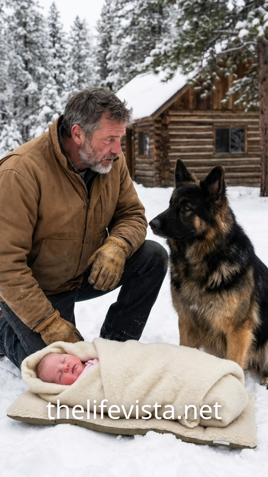 The German Shepherd mother waited a short distance away. Her posture had changed—less rigid than the night before, yet purposeful. The darkness had been a vigil; daylight marked the moment to act. Jack secured the baby inside, checking warmth and breath one final time, then followed the dog into the forest.