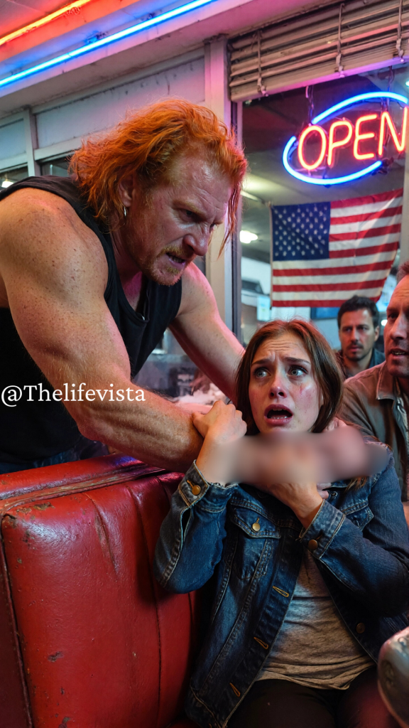 Mara felt her pulse in her throat. The biker’s conversation had stopped. The diner was silent except for Mr. Henderson snoring and the hum of the lights. Vince laughed, a wet, ugly sound. Please. Oh, she said please. He started around the counter. You know what? I’m tired of people telling me no. You, my father, everyone in this pathetic town.