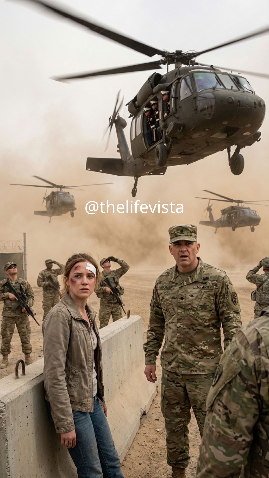 The three Black Hawks didn’t head for the airfield. They didn’t head for the helipad. They flared their rotors directly over the main parade ground, less than two hundred yards from where we stood. The downdraft was so powerful it sent dust and trash spiraling into a cyclone, forcing Cole to cover his face.