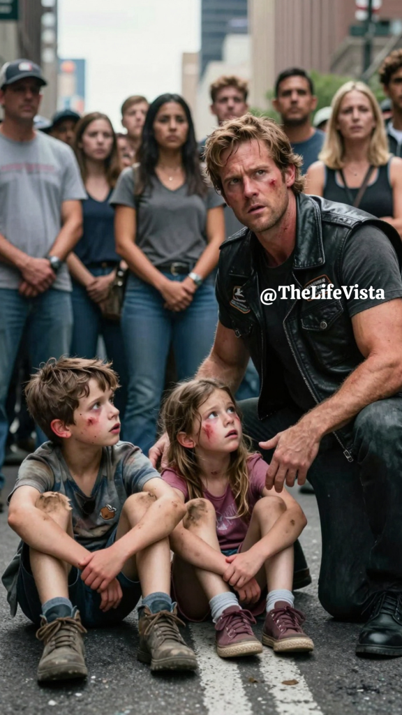 Lena dug through her grocery bag and produced a handful of napkins, pressing them gently against his arm, and Victor accepted the help without protest, his expression softening despite himself. “Don’t usually get this,” he said quietly. “Most folks cross the street when they see the vest.”