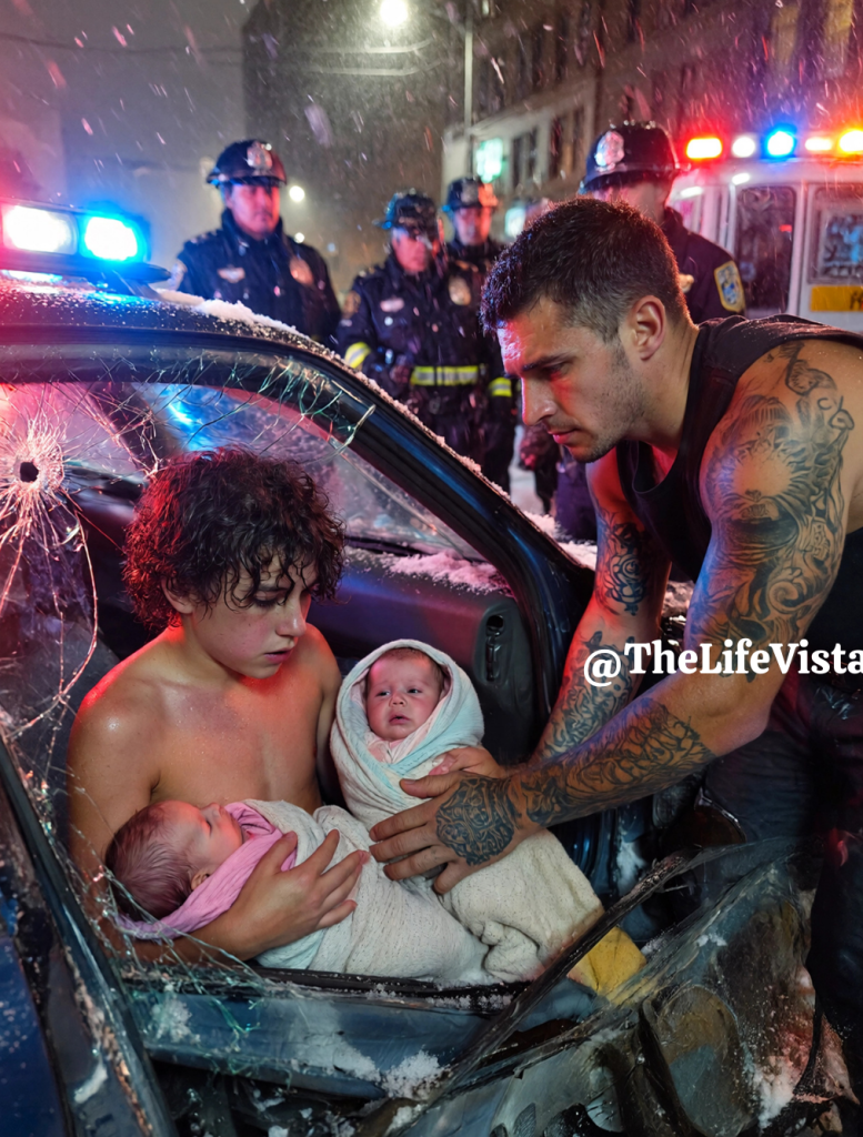 Jaden pressed his face against the shattered rear window and squinted through the storm and his fading vision. Inside were two rear-facing car seats designed for newborns. In them lay two tiny bodies that could not have been more than a few days old.