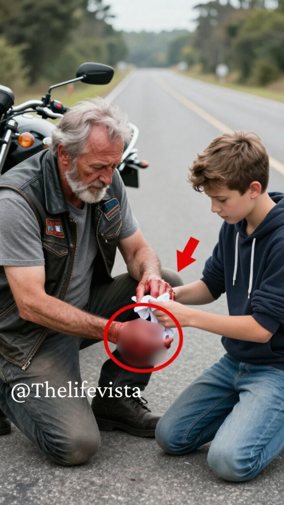 When 16-year-old Marcus found a bloodied motorcycle captain lying on the highway, he had no idea the patch on that leather jacket would change everything because the man he was about to save wasn’t just any biker. He was a Hell’s Angel’s captain who never forgets a debt. What started as a simple act of kindness on a lonely road became something much bigger when Marcus showed up to that diner the next day surrounded by leather and chrome face to face with one of the most feared motorcycle clubs in America. But when a hardened biker captain looks a homeless teenager in the eye and says, “Name your price.”