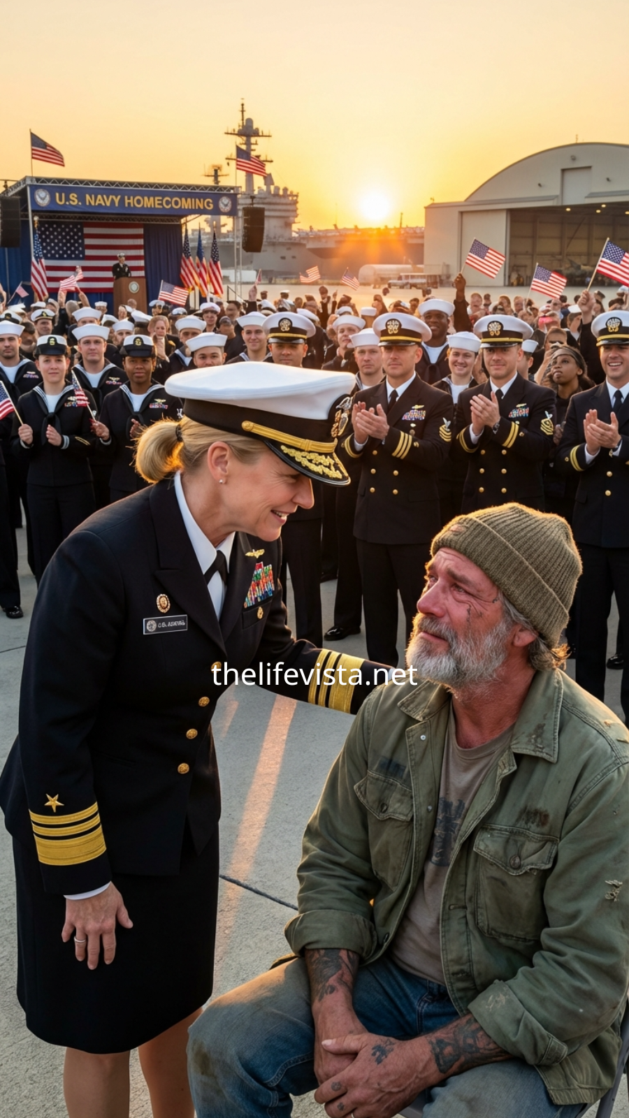 The evening wind swept across the naval base like a quiet warning from the sea beyond the gates, carrying salt, anticipation, and the muted clang of brass instruments being tuned inside the graduation hall. Families gathered in clusters of pride and excitement—pressed uniforms, polished shoes, medals catching the light. Everyone belonged there.