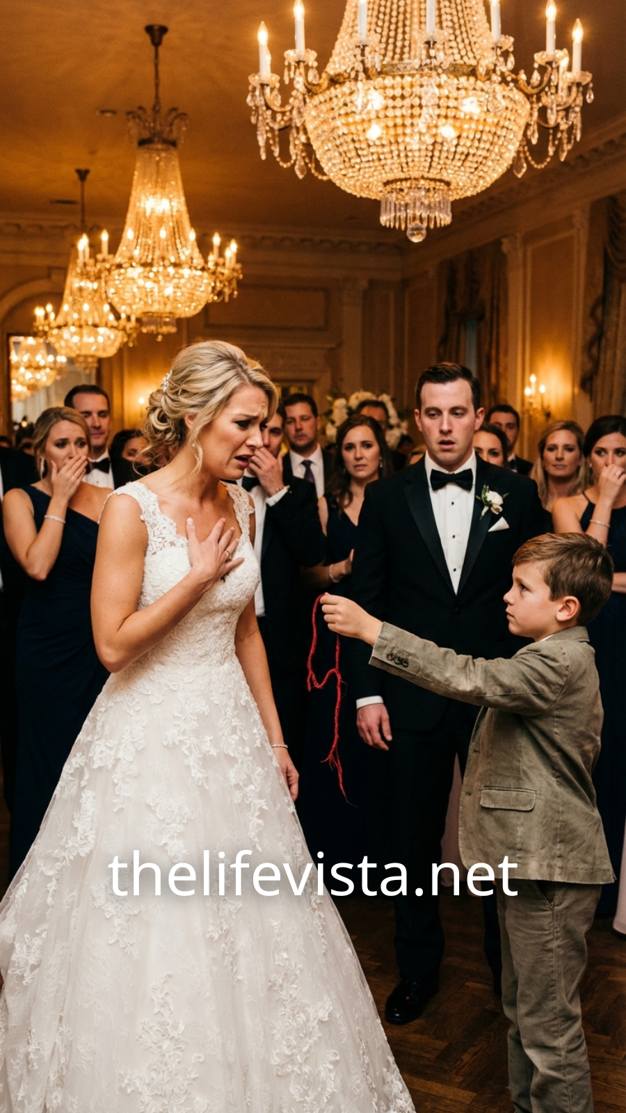 The room collapsed into stunned silence. The music kept playing, but no one breathed. The bride stopped. Slowly, she looked down at her wrist, then raised her eyes to the child standing before her. In his gaze, she saw something she had carried within herself for ten long years—the same eyes she had once seen filled with confusion and tears.