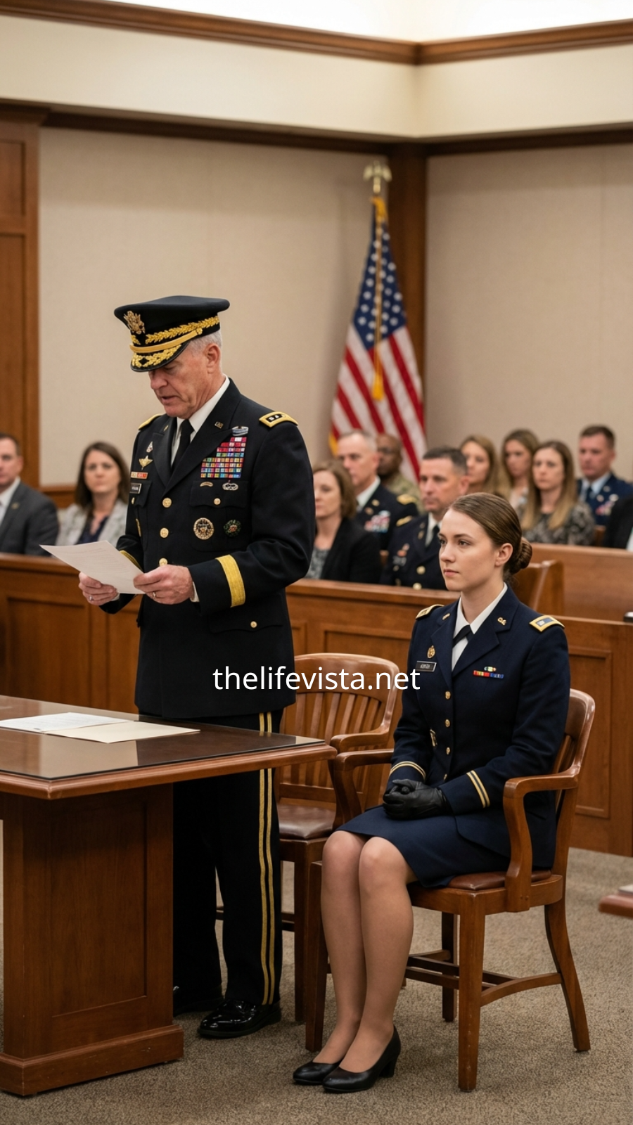 She’s a hero, someone whispered from the gallery, the words carrying clearly in the tense silence. Mara stood quietly beside the general, saying nothing, allowing truth to land where it needed without her having to defend or explain herself. The general turned to her with visible respect. Captain Donovan, do I have your permission to address this court on your behalf? She nodded once, trusting him completely.