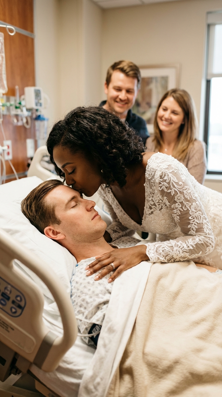 The ceremony was arranged. It was nothing like a wedding, but the cameras were rolling, the photographers clicking, and Monica stood at Logan’s bedside in a borrowed lace gown that was far too large for her. Richard Turner, standing near the window, was all business, no emotion.
