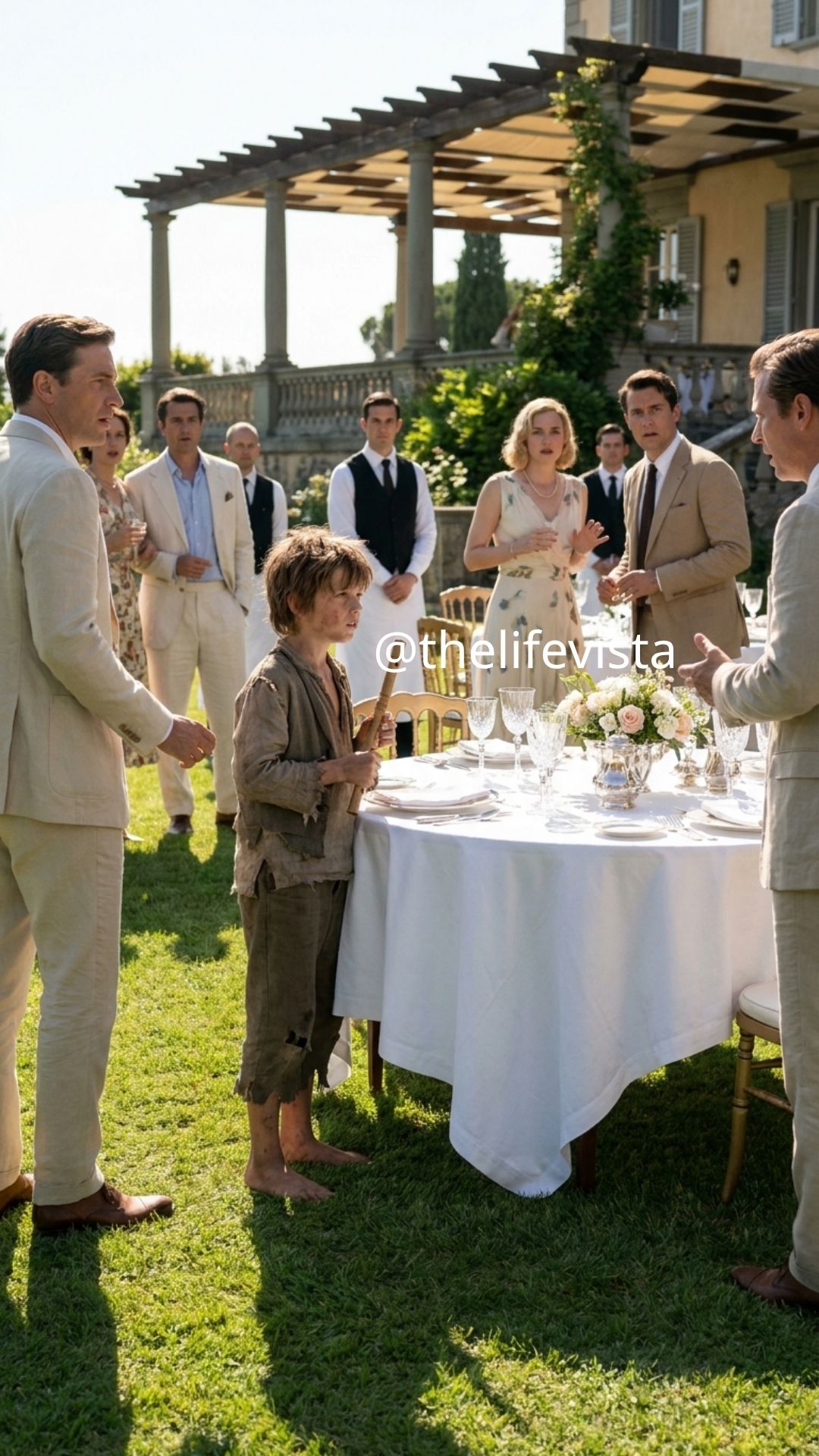 The boy stood there in torn clothes, surrounded by wealth and perfection, and somehow he was the only one who looked real, the only one who carried truth without disguise.