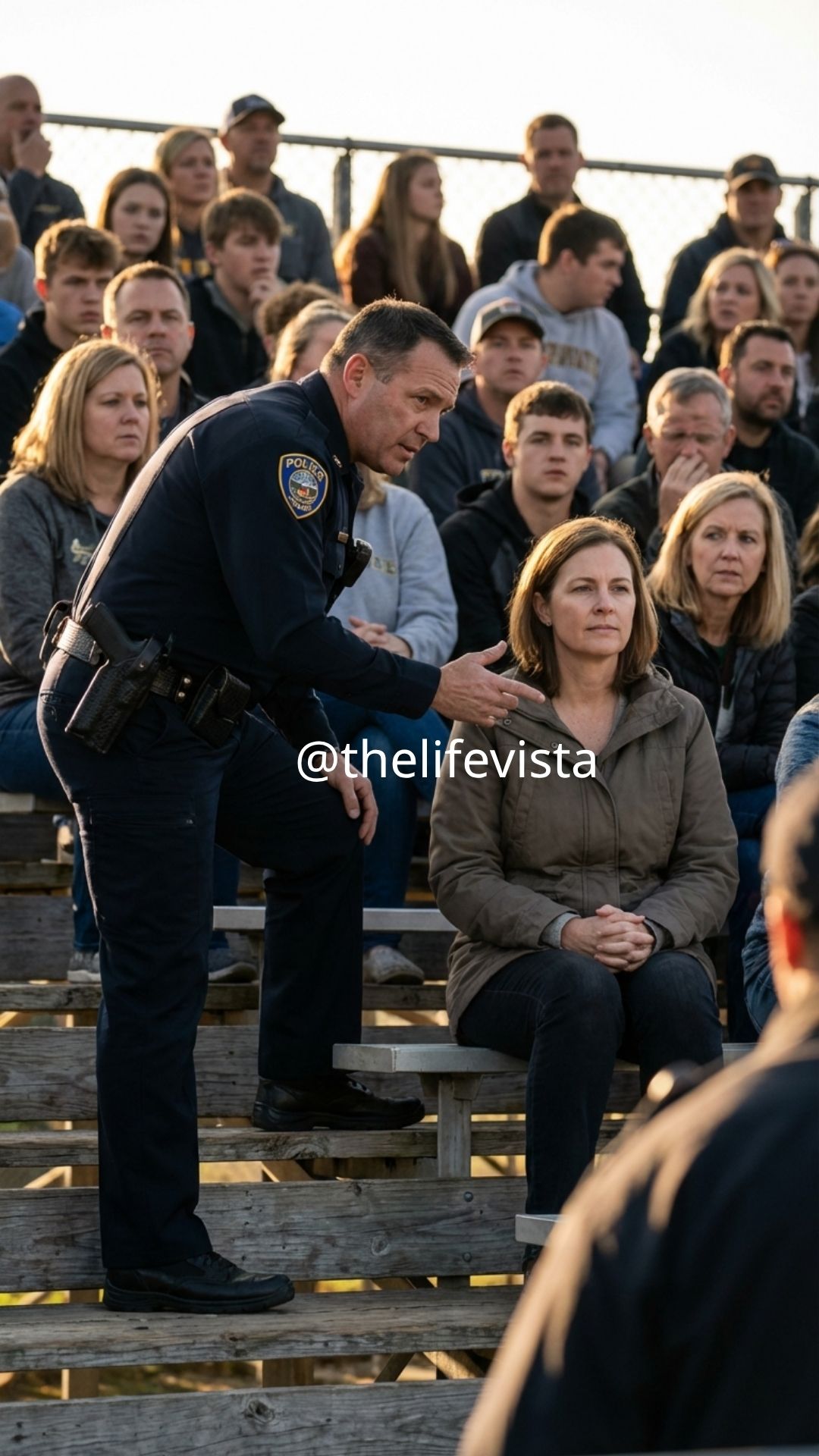 “That doesn’t change the rule,” Daniel Hayes countered, leaning in closer so that the conversation felt contained yet increasingly tense. “If you can’t follow instructions, I can have you removed from the bleachers immediately.” The word “removed” lingered in the air, creating an uncomfortable shift among the surrounding spectators, some of whom glanced over while others pretended not to notice the growing exchange that threatened to overshadow the ceremony unfolding below.