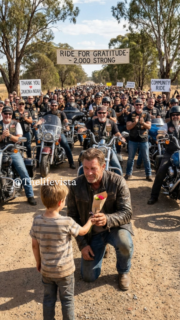 “This kid,” Jaxon said, “saved my life.” Word spread fast. The next weekend, 2,000 bikers, 2,000, rode into that small town. Engines thundered like a storm. People came out of their homes in fear, thinking trouble had arrived. But it wasn’t trouble. It was gratitude. They gathered at the little trailer park where Noah lived.