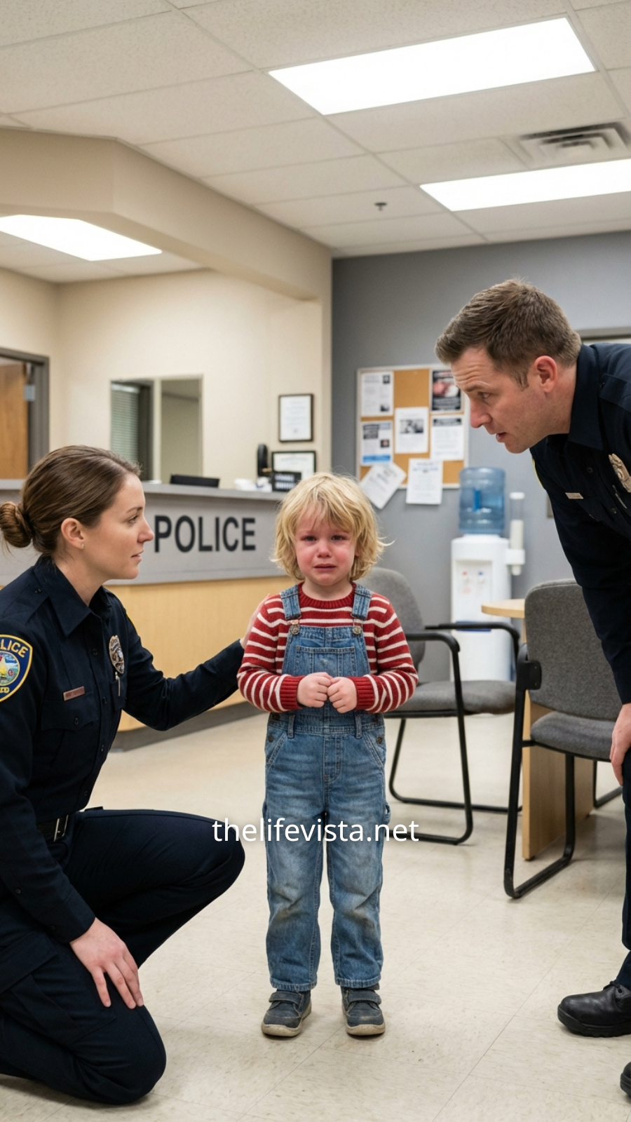 A few officers nearby exchanged faint, amused looks at first—but those smiles faded quickly. There was something in her eyes. No mischief. No attention-seeking. Just fear.
