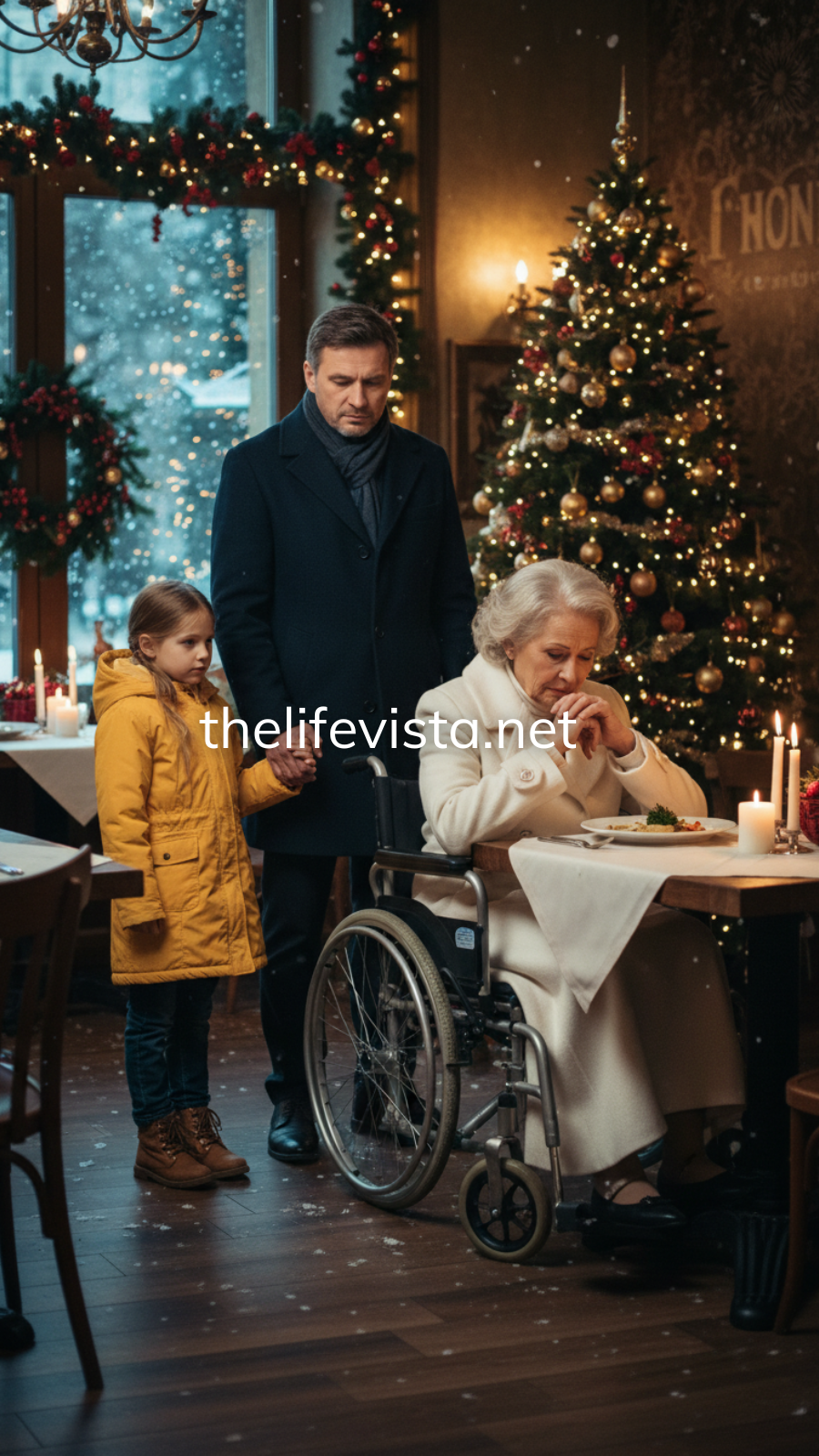 “Please,” she said, her voice breaking. “Please don’t go. I’ve been sitting at this table alone for three hours. Would you—would you and your daughter consider joining me for dinner?”