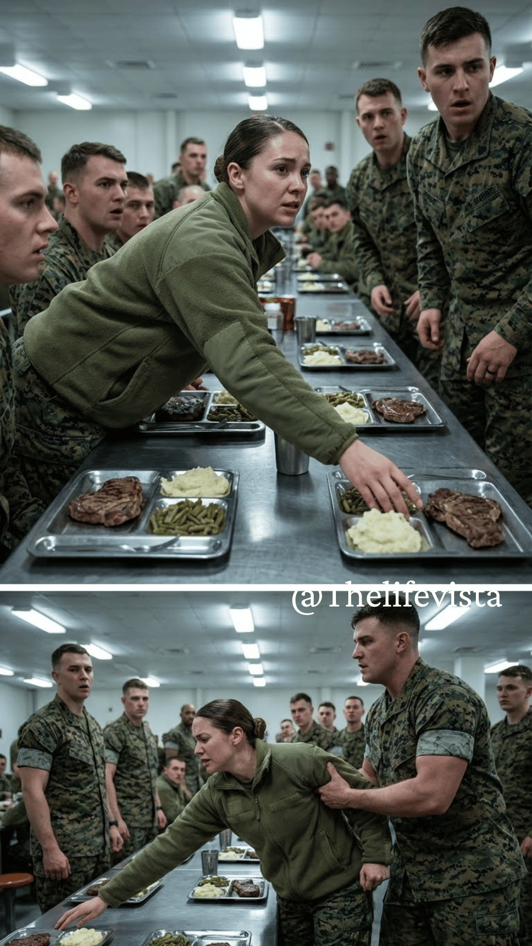 She moved closer, selecting a seat within earshot while maintaining her anonymity. The mess hall was packed, forcing her to navigate between tightly arranged tables. As she squeezed past the Marine’s table, she felt a sharp tug on her ponytail.