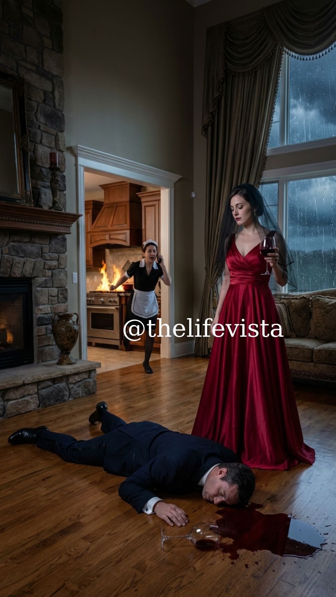 He did not expect the bitterness rising in his throat. It tasted metallic and sharp. When the wineglass slipped from his fingers and shattered across the marble, he thought it was his cue. He let his knees buckle. His body hit the ground with a hollow crack.