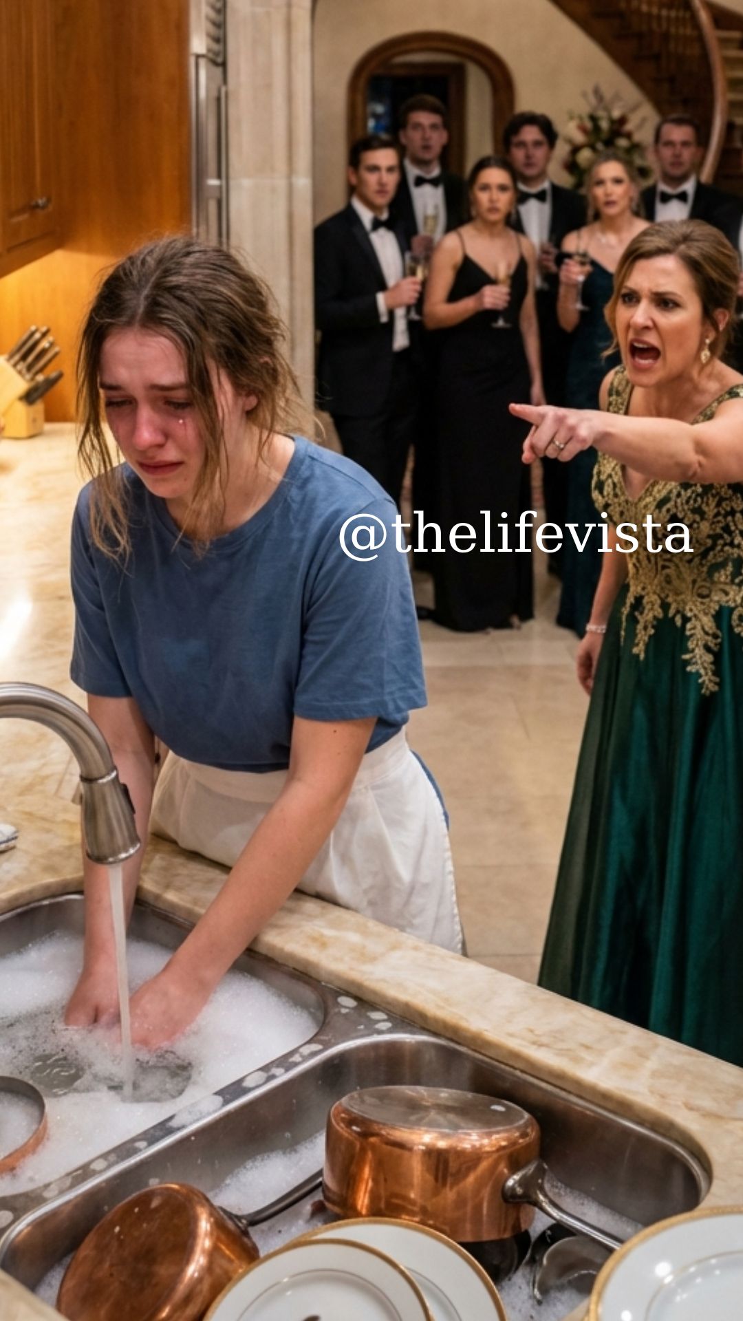 When I stepped quietly through the narrow doorway that led from the hallway into that small service kitchen, I had expected to find a maid finishing the dishes after what appeared to be a gathering upstairs. Instead, the sight that greeted me held me in place so suddenly that my hand remained frozen on the doorframe.