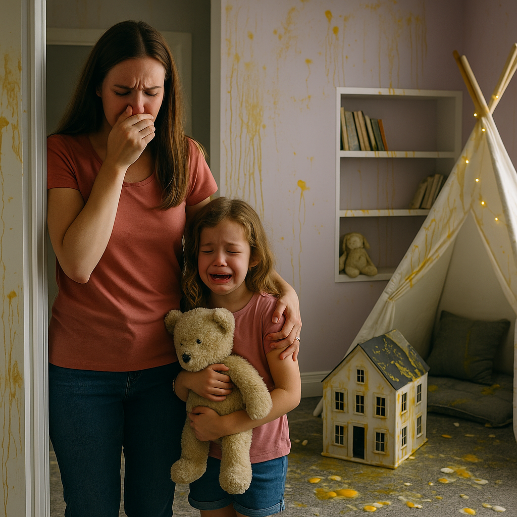 The lavender walls dripped with slime. The new carpet was ruined. Lily’s books were soaked, her stuffed animals stained, her dollhouse splattered. The smell made me gag.