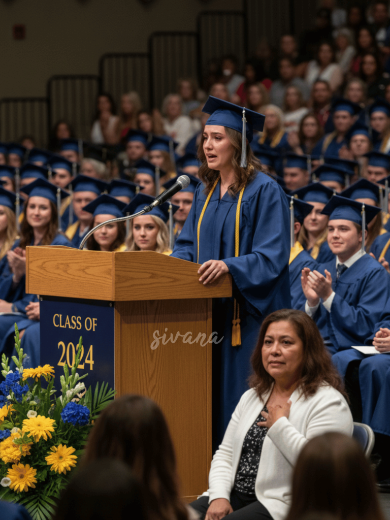 Nora stepped up to the microphone, her heart pounding against her ribs like a trapped bird. She smoothed down the front of her rented graduation gown, her hands trembling slightly as she unfolded the piece of paper containing her speech. Her voice, when she began to speak, was quiet but clear, carrying to every corner of the suddenly silent gymnasium.