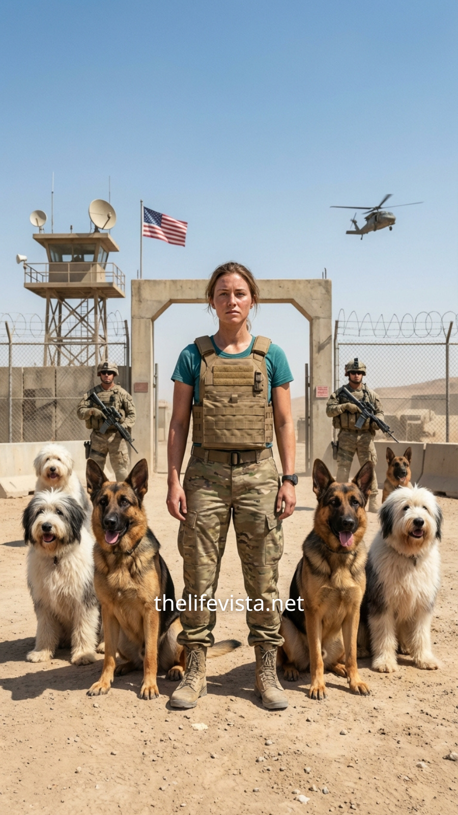 Every K9 on the training yard moved at once—not barking, not charging—but forming a wide, silent arc around her. Fifty trained military animals creating a living barrier, without a single command spoken.