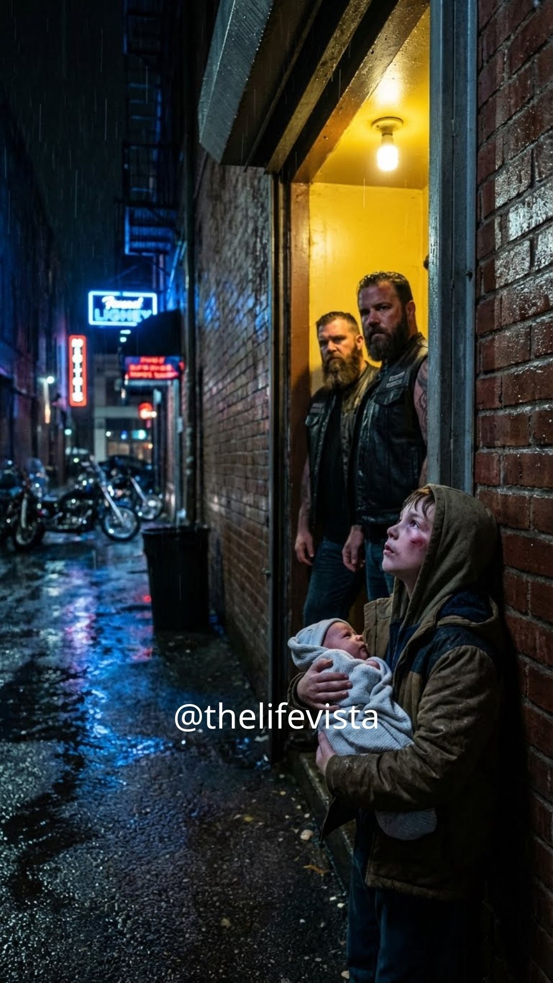 “Please,” he whispered, eyes darting past Jackson into the shadows behind him where men with leather vests and iron stares watched silently. “Can you hide my sister… just until morning?”