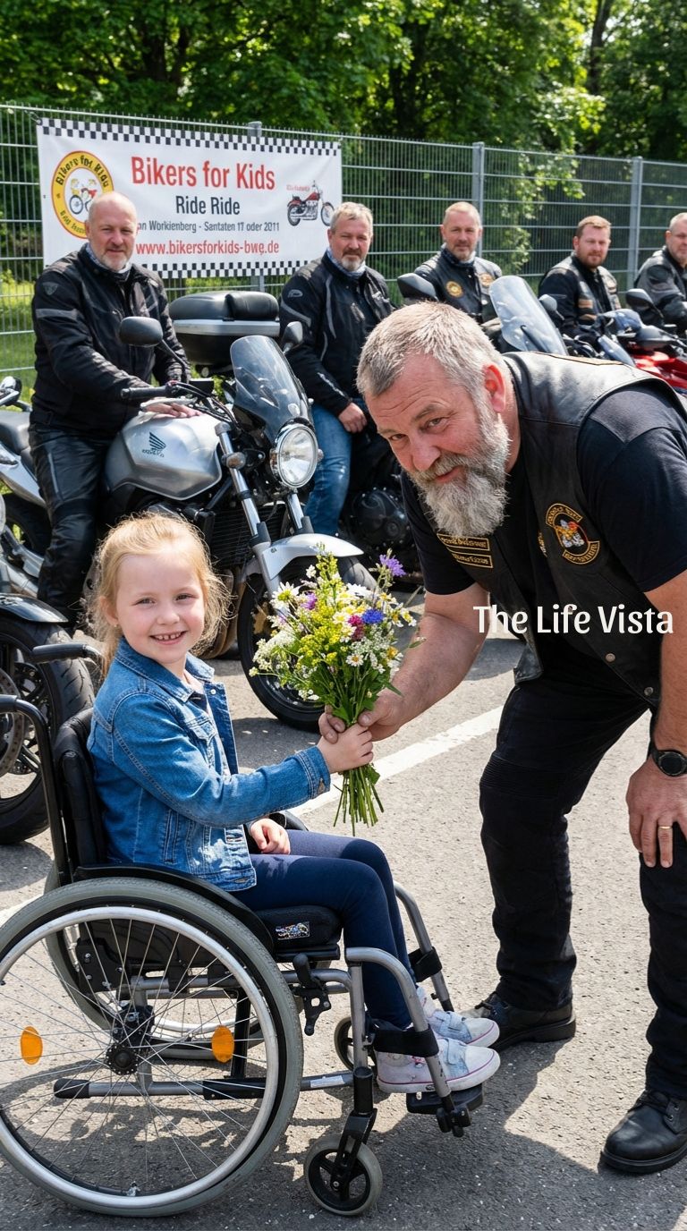A paralyzed little girl offered flowers to a Hells Angel biker—and the following day, 200 riders showed up to escort her to school, transforming a simple act of kindness into an unforgettable display of loyalty and support.