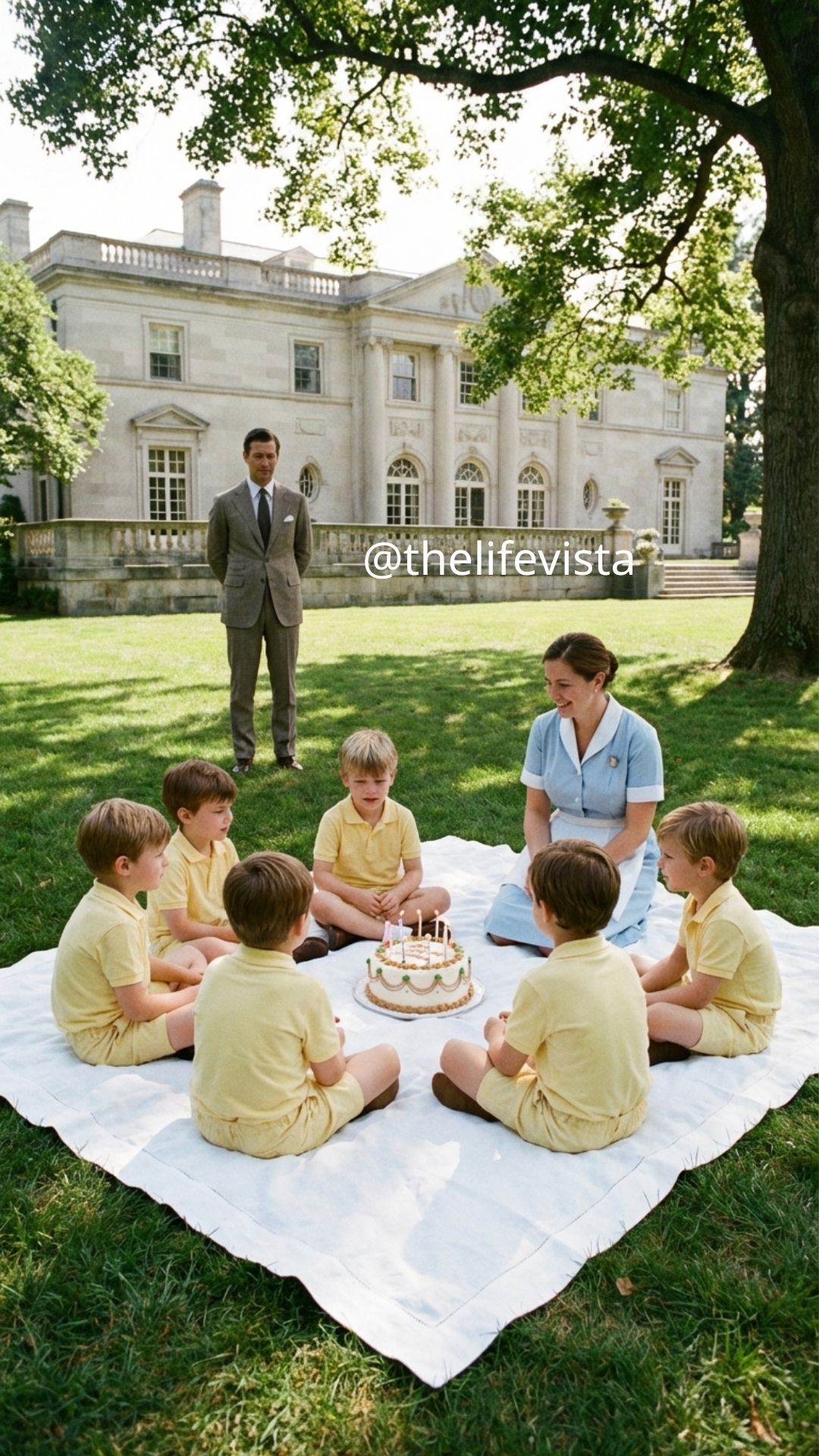 Jason stepped out of the car and walked toward the house, his briefcase heavy in his hand, carrying papers and contracts that suddenly felt like dead weight. But when his foot crunched softly against something unexpected on the lawn, he froze as though the ground itself had stopped him. There, spread across the grass, was a red-and-white picnic blanket, placed with care under the open night sky as if someone had decided the world needed warmth despite the emptiness of the mansion. At its center sat a small homemade cake with four thin candles burning unevenly, their flames trembling in the breeze like fragile hope. Around it, four little boys wearing matching blue T-shirts laughed so freely it felt as though time itself had paused just to watch them, their joy spilling out into the darkness as if they refused to let the night win. And standing in the middle of it all was a woman Jason barely noticed most days.