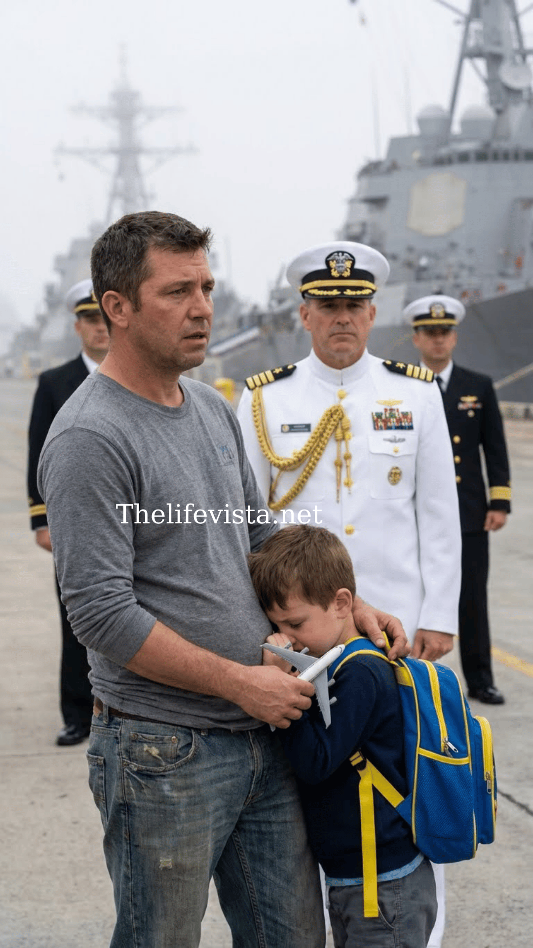 It was a cold morning on the naval base in San Diego, the kind of morning that carries the scent of salt, metal, and memories. The fog hung low over the water, and ships sat in quiet pride like sleeping giants. The rhythmic echo of boots on pavement broke the silence as sailors moved to their posts. Amid the bustle of disciplined chaos, one man stood out, not because of his uniform, but because of the weight he carried in his eyes. His name was Daniel Brooks. He wasn’t supposed to be there that day, not as a soldier, but as a single father, just trying to pick up his little boy from the daycare on base.