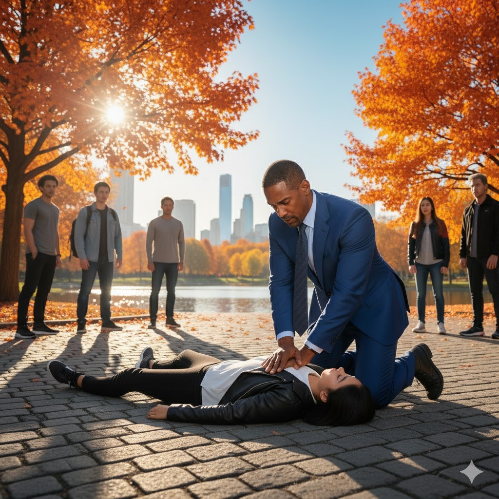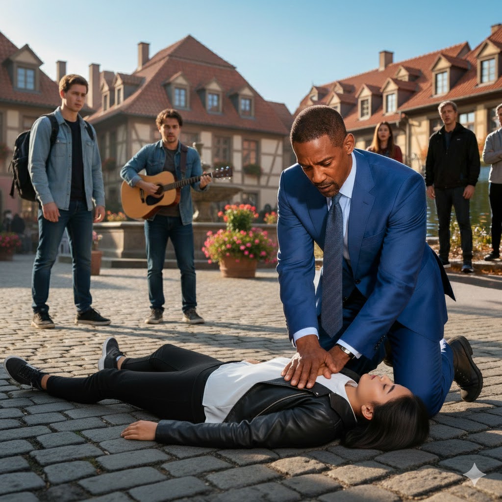 The man, whose name was Marcus Turner, had once trained as a paramedic before life forced him into different paths. He immediately checked her pulse, tilted her head back, and began chest compressions when her breathing faltered. “Call an ambulance!” he barked to the stunned crowd. A teenager nearby finally snapped out of it and dialed.