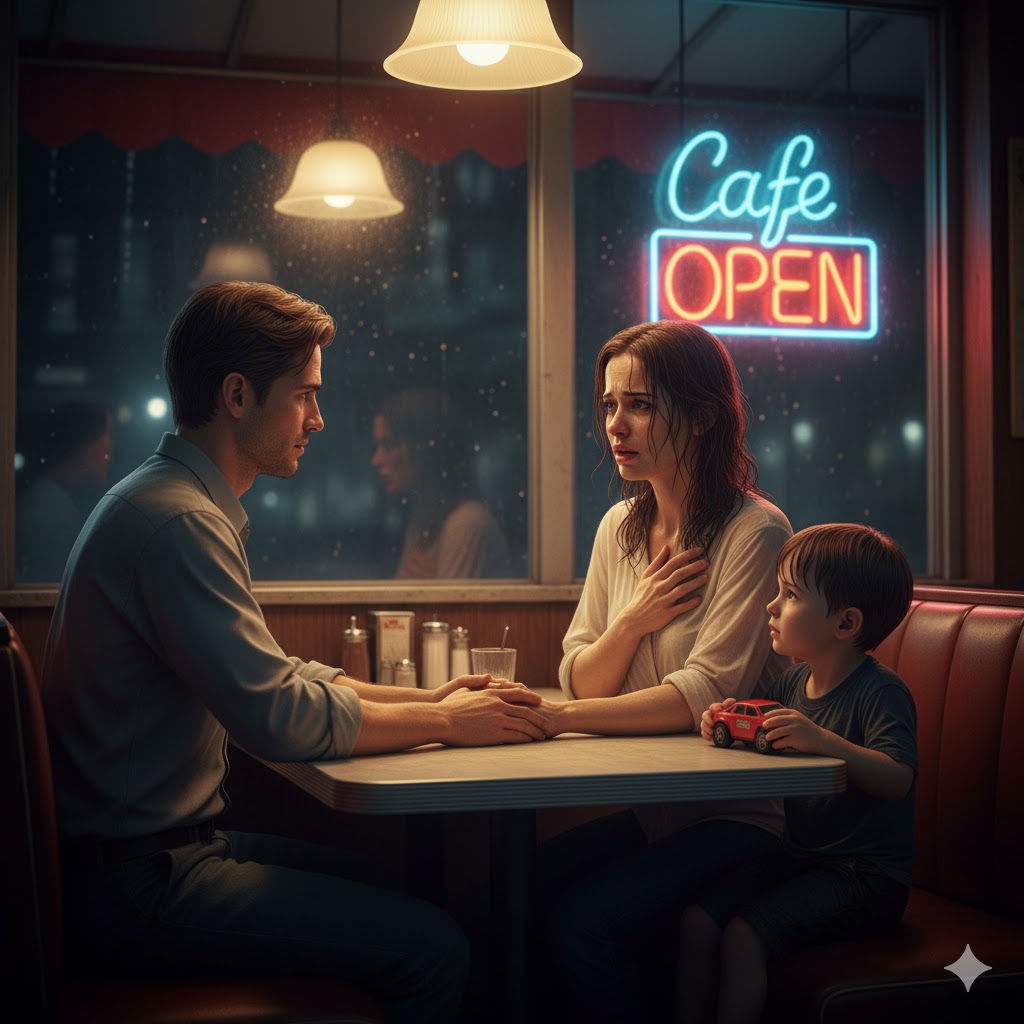 He knew that shelter. It wasn’t safe. He wanted to say something, but before he could, Eli laughed at a joke the waitress told — a bright, sudden sound that cut through the dullness of the diner.
