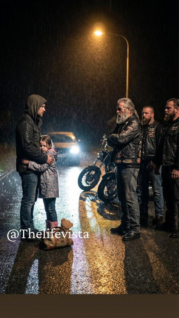 ” The man didn’t move. “Name’s Hawk,” he said finally, nodding to the others. “She’s your girl.” Lucas looked down at Lily, now fully awake, her wide eyes darting between the strangers. She’s my whole world. A low hum rumbled among the bikes, like a silent agreement.