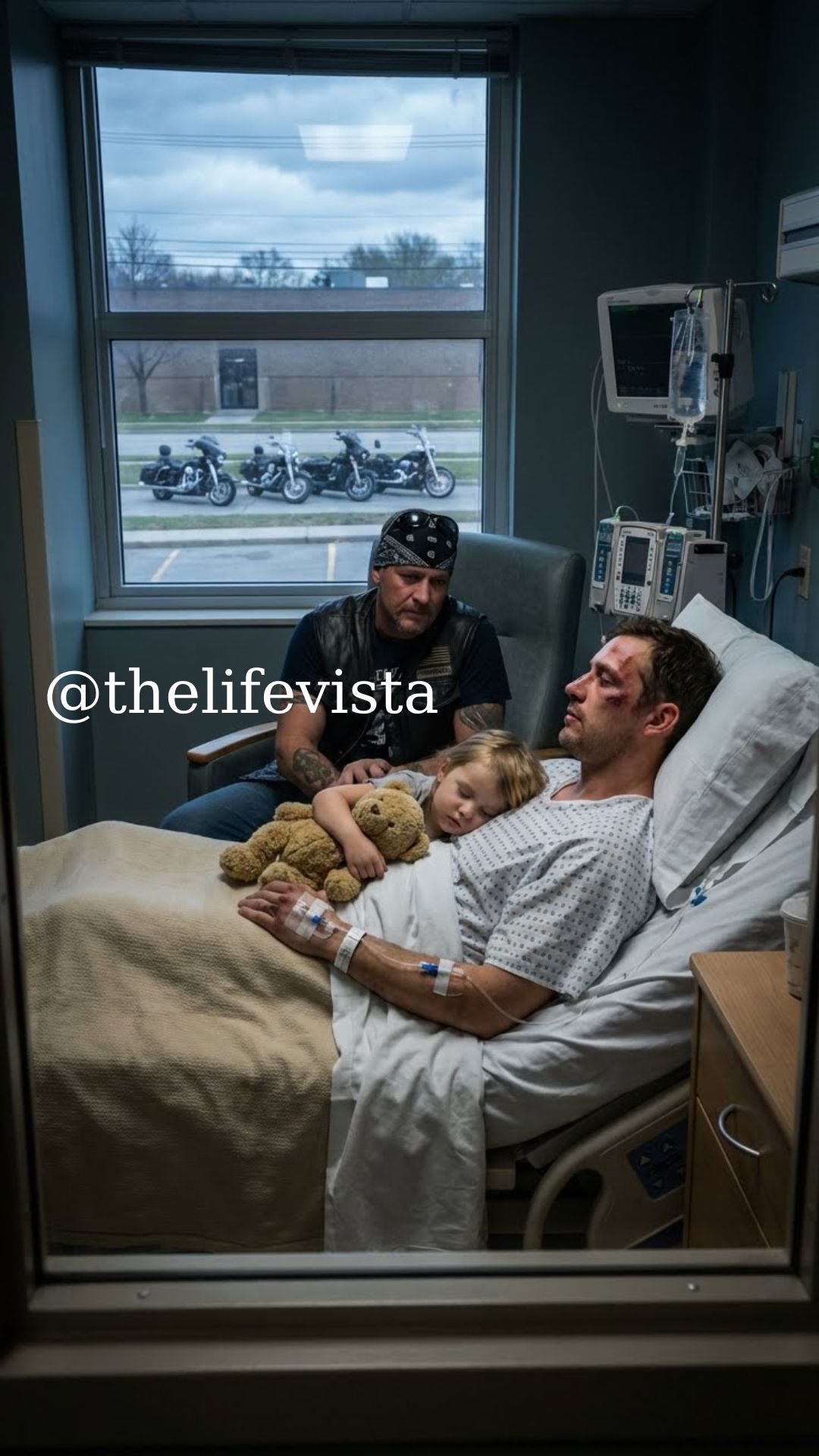 At the hospital, staff stared as nearly a hundred bikers filled the waiting room.