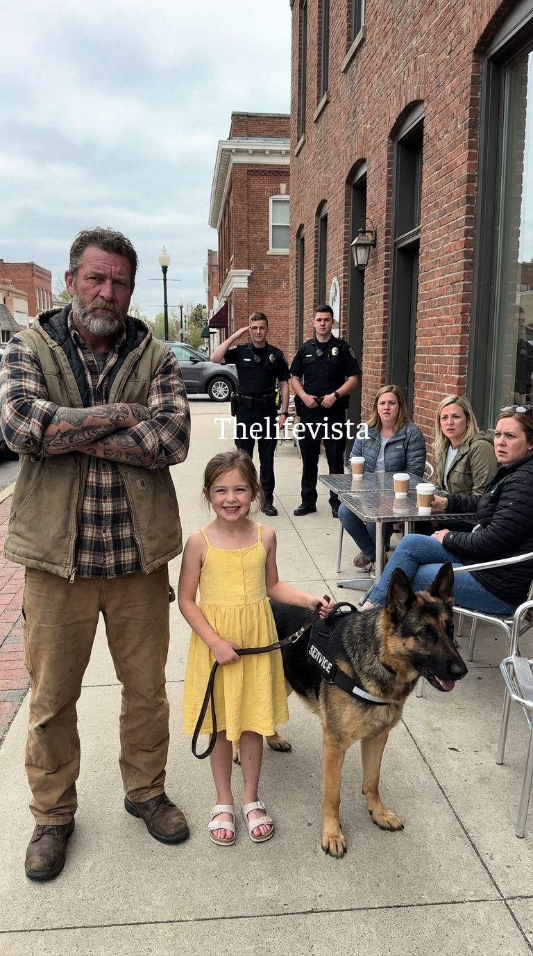To most of the café’s customers, it looked less like a pet and more like something you might see guarding a prison yard. Yet the strangest part of the scene wasn’t the biker or the dog. It was the little girl sitting between them.